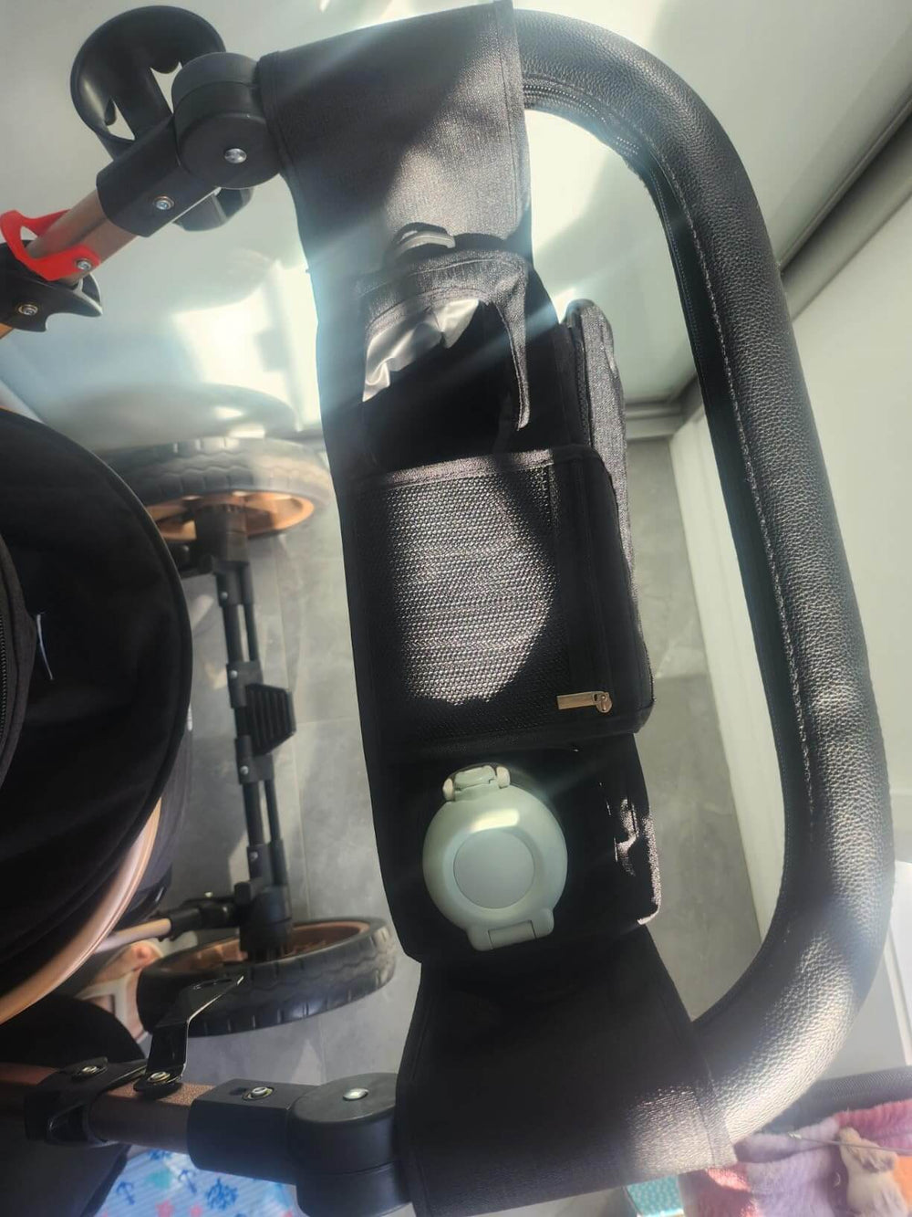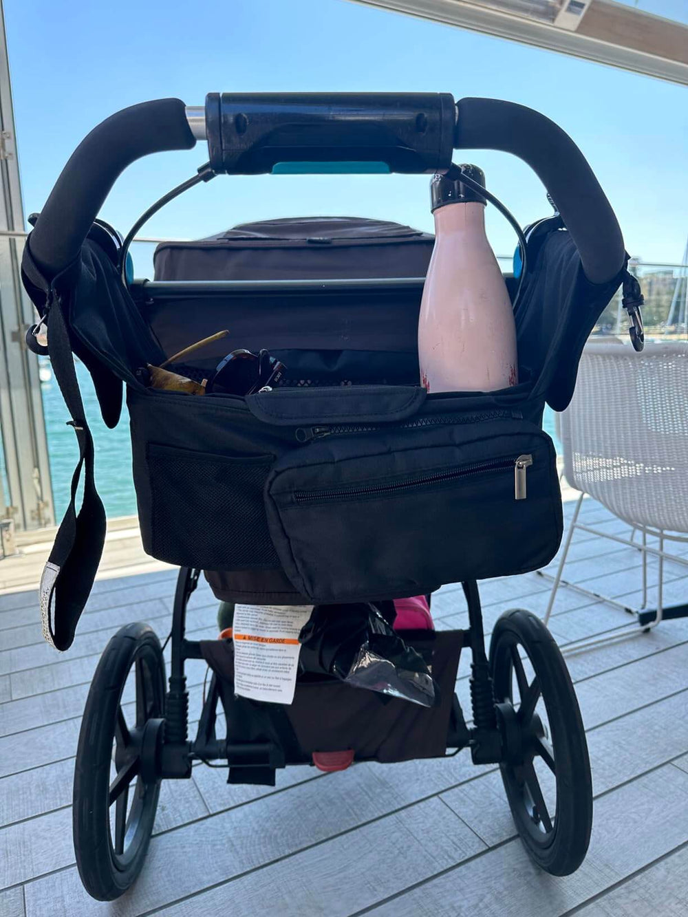 Less mental load when you’re out with your baby. Everything you need, exactly where you need it — no digging, no stress. Easy access to the little essentials in a hurry: water bottle, phone, keys, dummy, tissues… all in one grab-and-go setup. Designed to reduce the daily stress of getting out of the house.